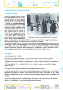 Acest material educațional include diverse activități, grupate în șapte lecții, pentru clasele pregătitoare – a IV-a care au menirea de a-i familiariza pe copii cu ideea de ritm, explorată în cadrul mai multor discipline, pornind de la patrimoniul Muzeului Nicolae Minovici.