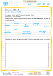 *Fișă de activități 2: Cartea mea de vizită